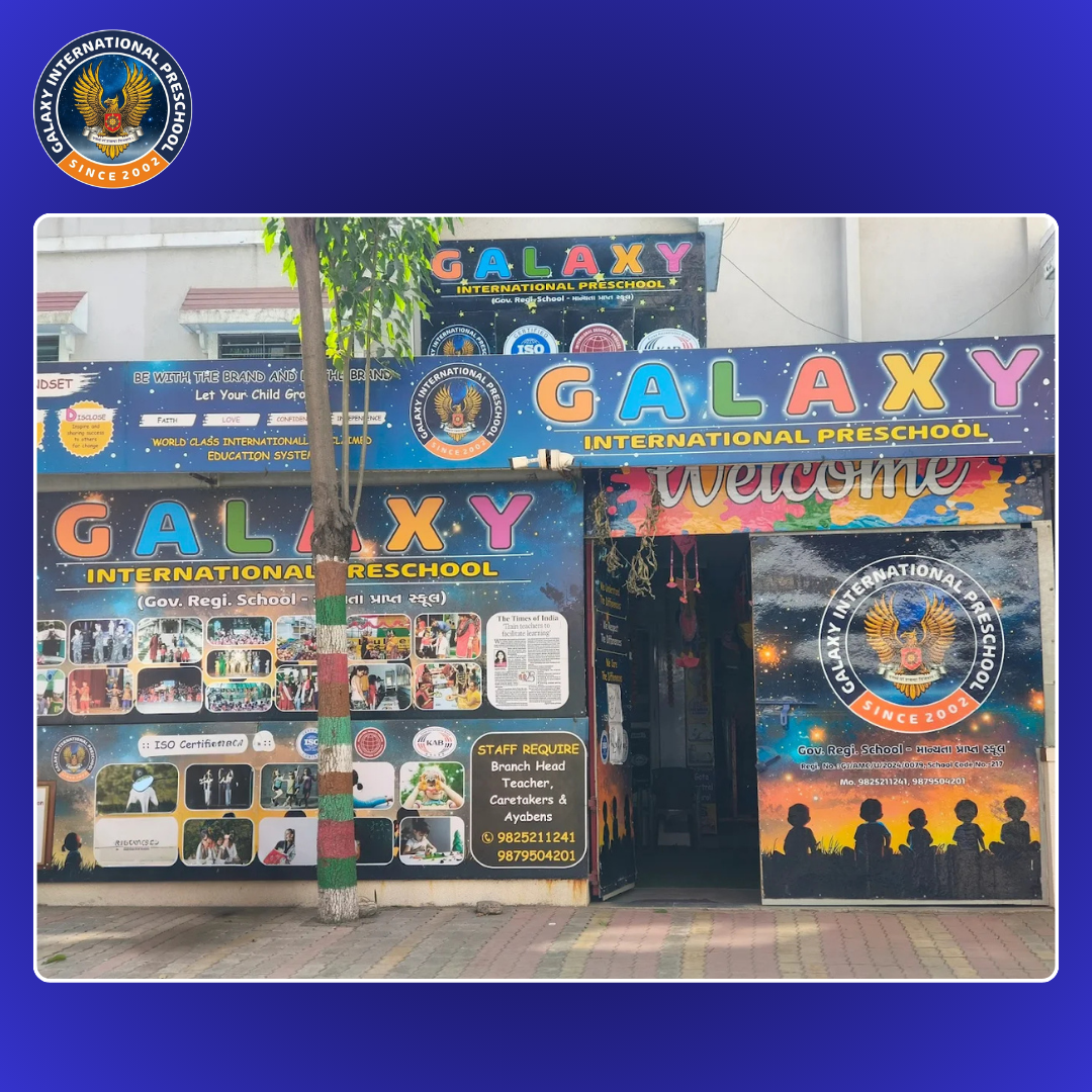 Galaxy International Preschool is among the first government-approved preschools in the area, backed by Fire NOC certification, AMC-approved building safety, CCTV surveillance, and strict hygiene standards. With trained educators, secure infrastructure, and a warm, family-like atmosphere, we proudly become a child’s second home and first learning foundation